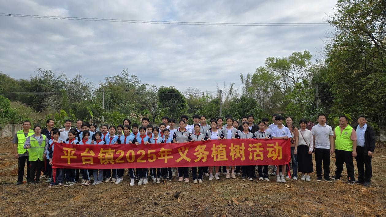 阳春三月,春意盎然,正是植树造林的好时节。3月14日,为响应2025年全省推进绿美广东生态建设暨五级林长义务植树活动,共青团平台镇委与镇初级中学、中心小学汇聚多方力量、因地制宜共建乡村绿化“育才林”,并组织开展了一场意义非凡的义务植树活动,旨在通过劳动实践教育,提升青少年的生态环保意识,共同为推进绿美广东生态建设贡献力量。