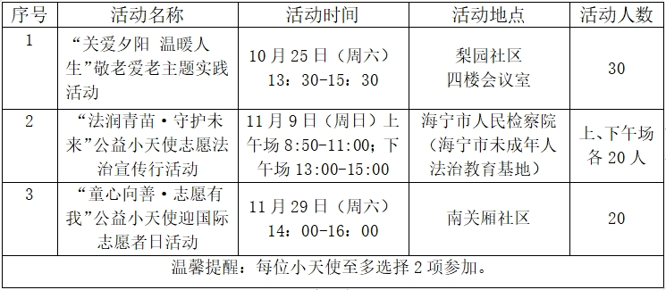亲爱的小天使们,专属于我们的活动又要启航啦~让我们一起参与志愿服务,享受在公益活动中收获的快乐,进而懂得社会责任感,同时收获专属你的成长。下阶段活动安排如下: