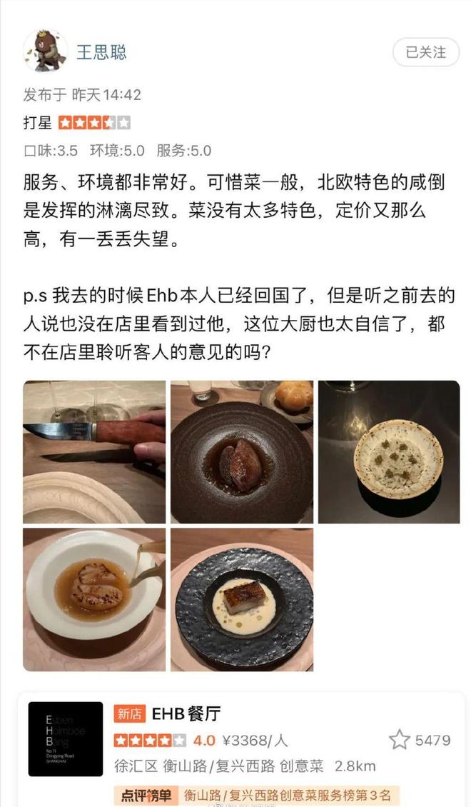 那时候,想吃EHB得提前三个月订位,一席难求,就连王思聪和明星虞书欣都来打卡。