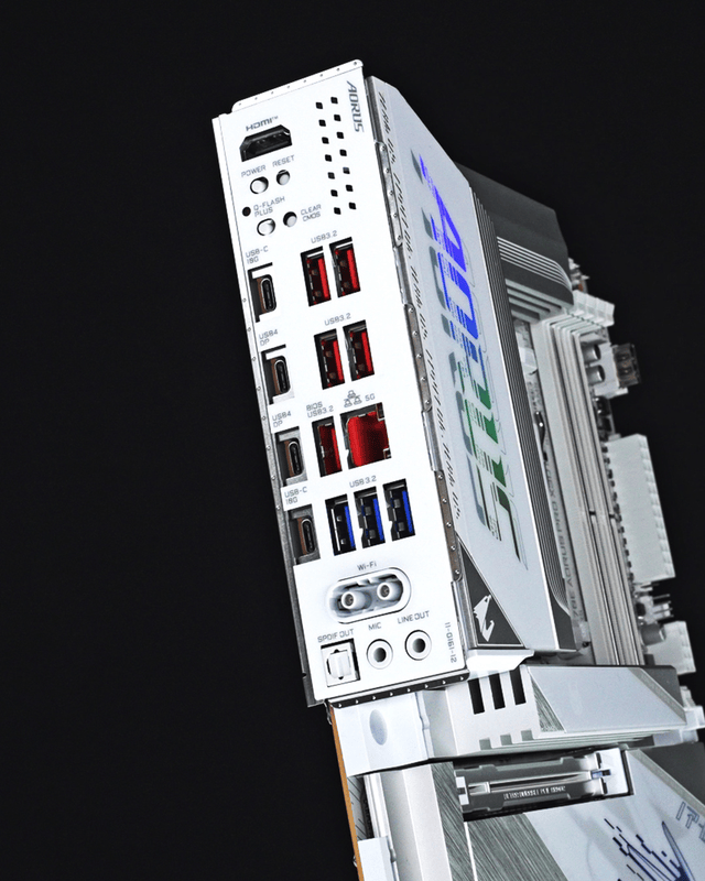 内存兼容性方面,这款主板配备四条 DDR5 内存插槽,最高可支持 9000+MT/s超高频内存。搭配新一代AI D5黑科技2.0的运用,可以释放出更强的内存性能。在PCB板的材料技术使用上,技嘉更是大手笔,主板采用了8层背钻PCB,这种材料技术能够有效减少信号反射,有助于提高时序精度以及全方位地提升系统性能。